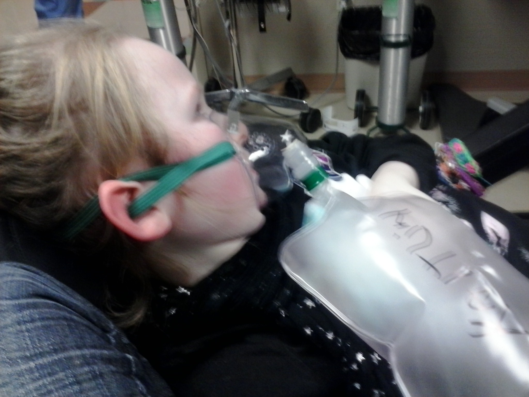 The only weirdness was the SURPRISE ER visit last week after Caitlin and her entire elementary school were exposed to a gas leak from the landfill next door. It was an extremely scary day, and there are still many unanswered questions about what the kids were exposed to, how it happened, and how the school responded after assurances in 2010 that they had an emergency plan for such things. (Here are the newspaper articles.) At the hospital, it was determined that Caitlin and the kids had been exposed to low levels of carbon monoxide, but the levels in her blood were still in the safe range. She HATED the oxygen mask.